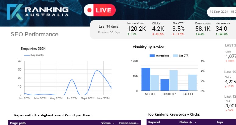 Below are the KPIs* we track with you in our live performance dashboard and regular check-ins.
