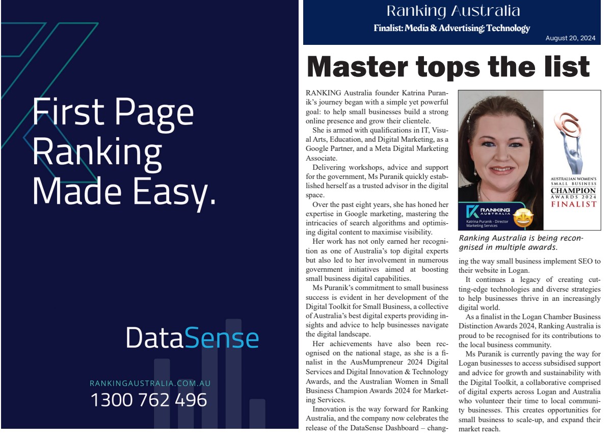 Australia Womens Small Business Champion Awards in 2023. After winning the Logan Chamber Technology Business Excellence Award!